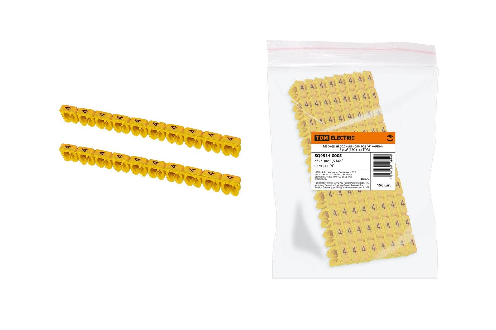 Маркер наборный - символ "4" желтый 1,5 мм2 (150 шт.) TDM