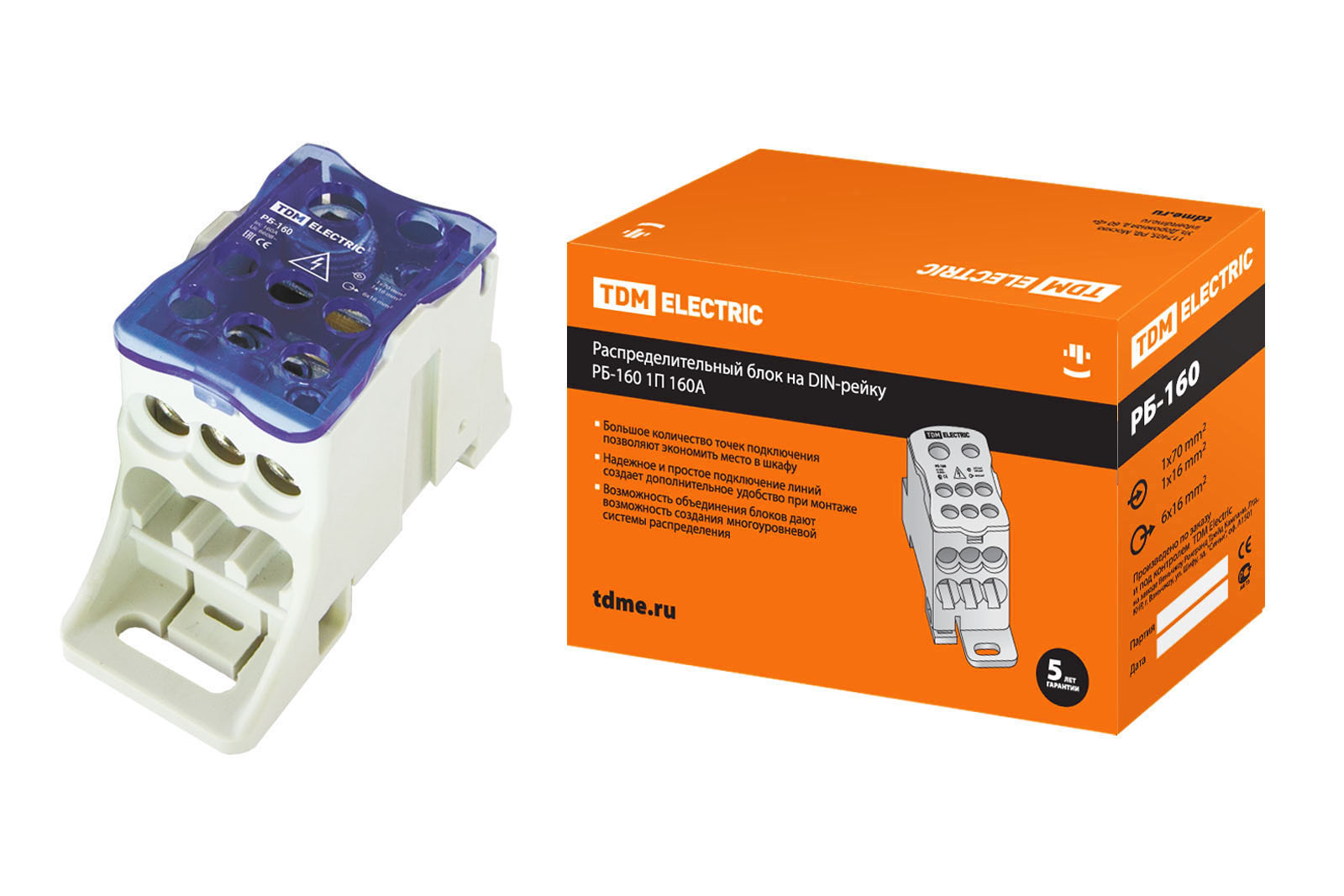 Распределительный блок на DIN-рейку РБ-160 1П 160А (1х70+1x16/6x16) TDM