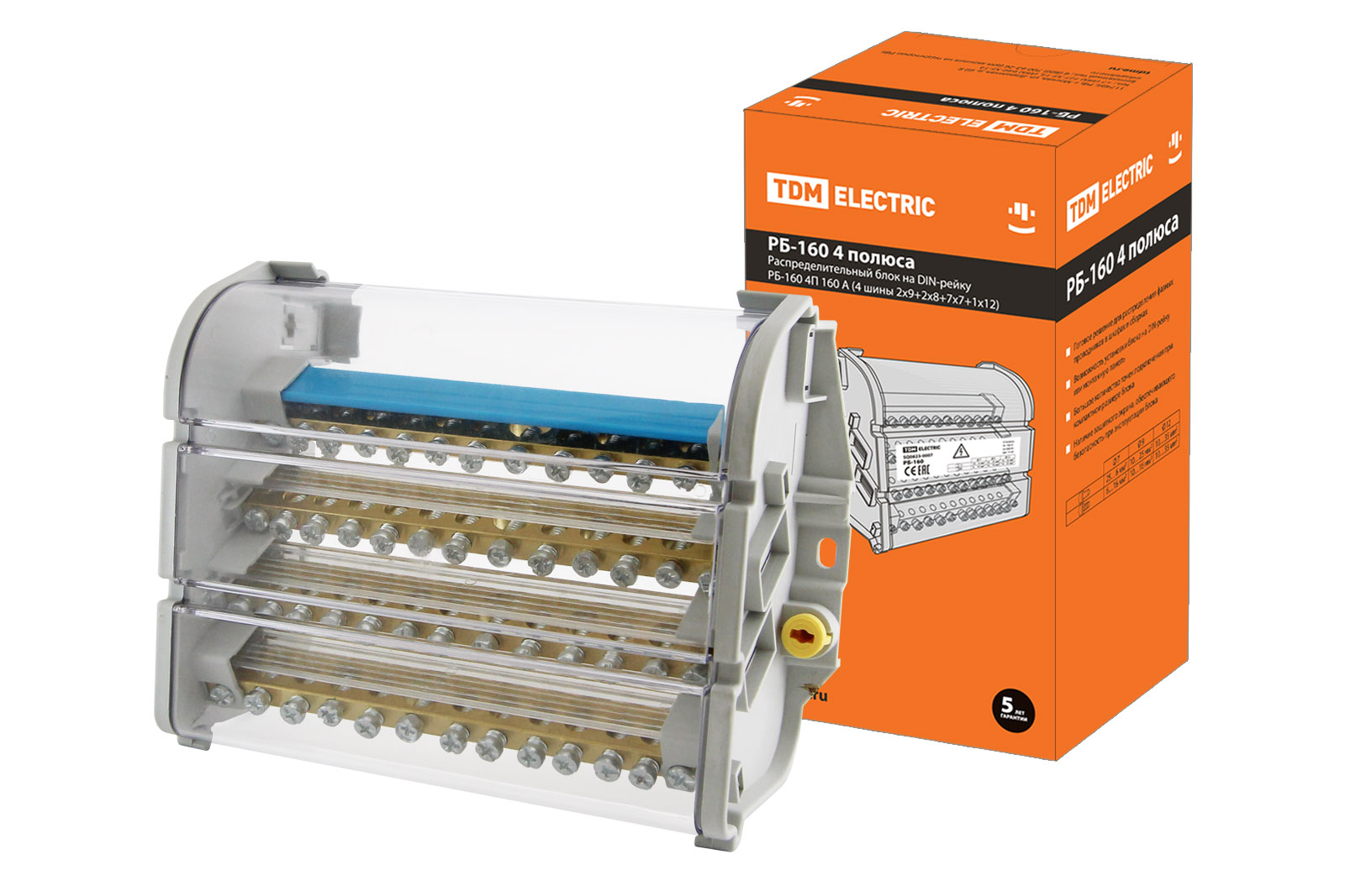 Распределительный блок на DIN-рейку РБ-160 4П 160А (4 шины 2x9+2x8+7x7+1x12) TDM