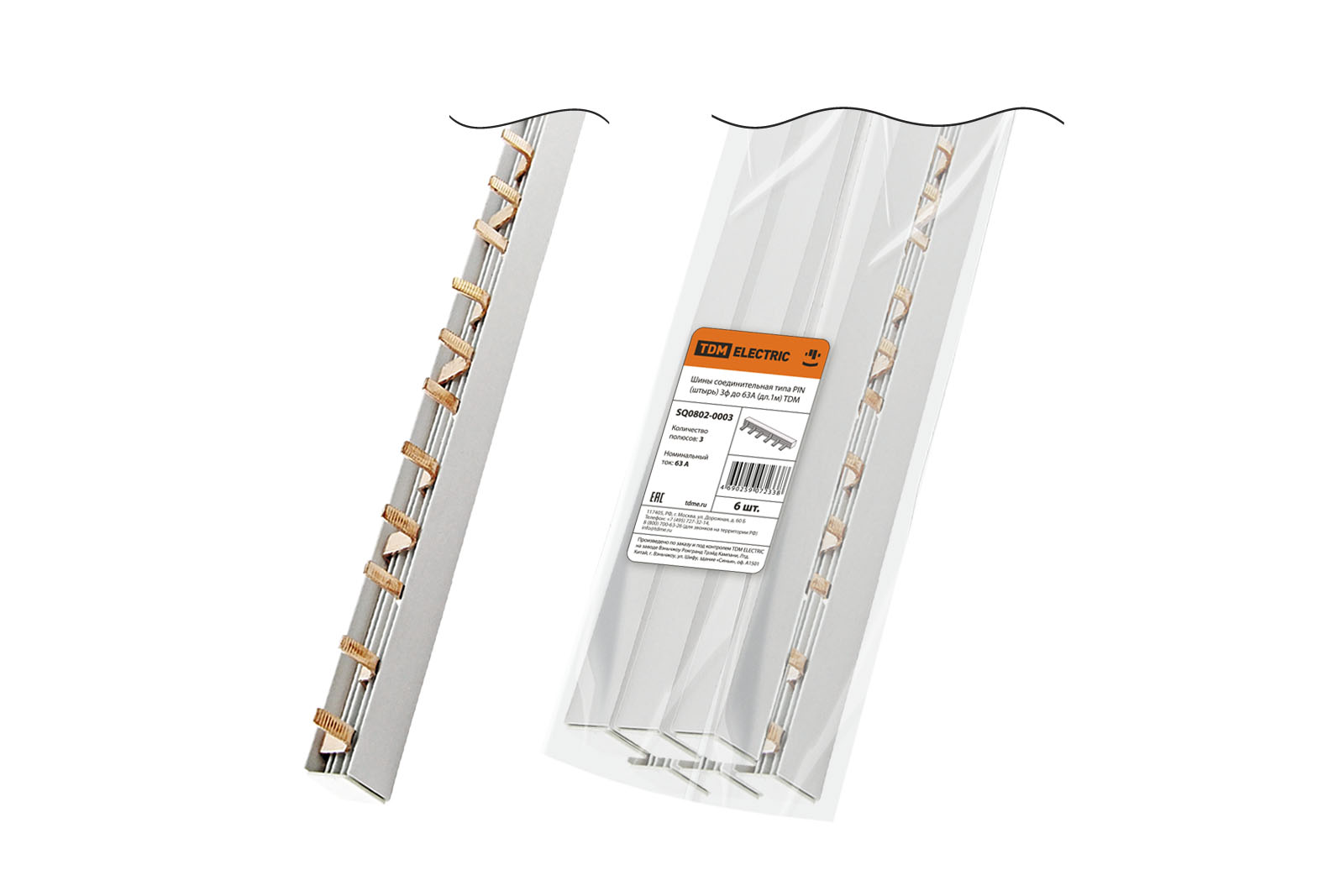 Шина соединительная 3П 63А PIN (штырь) 1 м. TDM