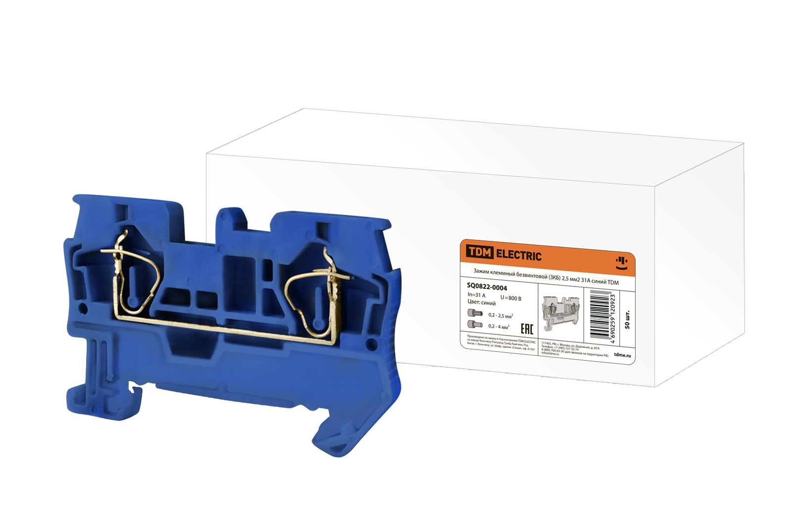 Зажим клеммный безвинтовой (ЗКБ) 2,5 мм2 31А синий TDM
