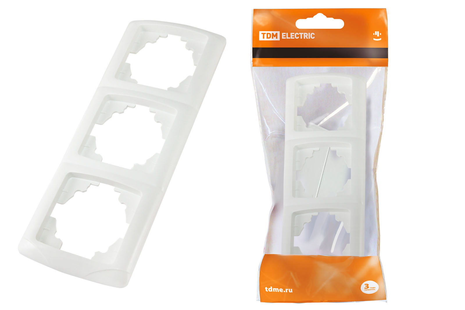 Рамка 3-х постовая вертикальная белая "Онега" TDM