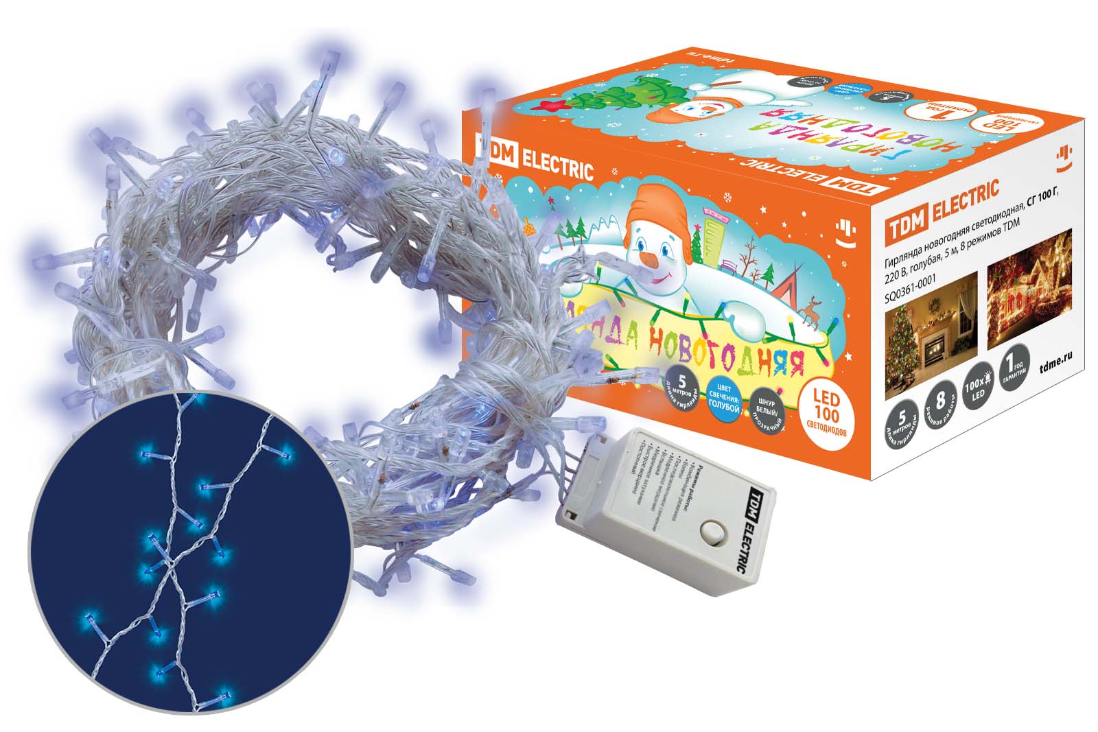 Гирлянда новогодняя светодиодная, СГ 100 Г, 220 В, голубая, 5 м, 8 режимов TDM