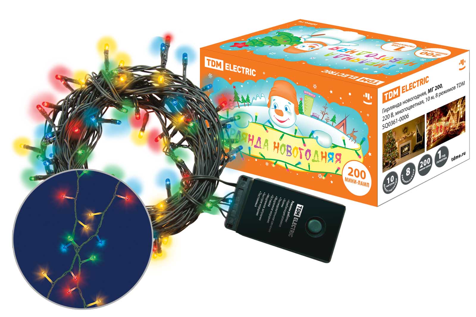 Гирлянда новогодняя, МГ 200, 220 В, многоцветная, 10 м, 8 режимов TDM