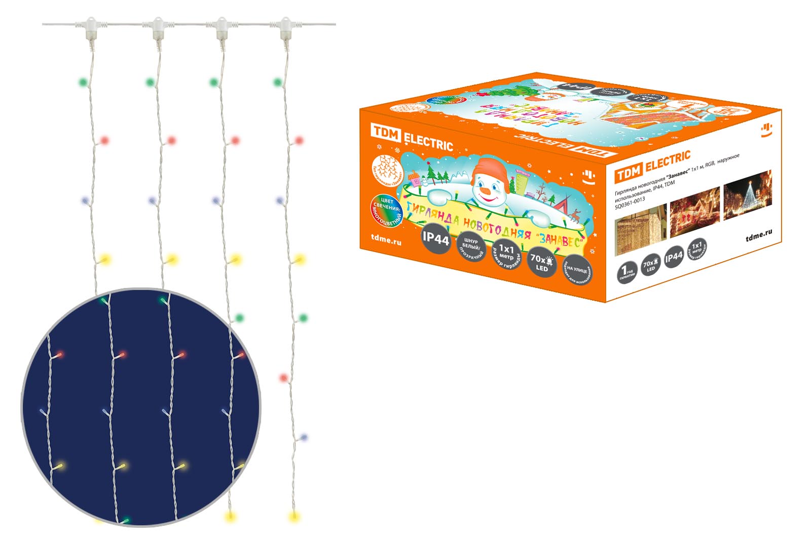 Гирлянда новогодняя "Занавес" 1х1 м, RGB, наружное использование, IP44, TDM