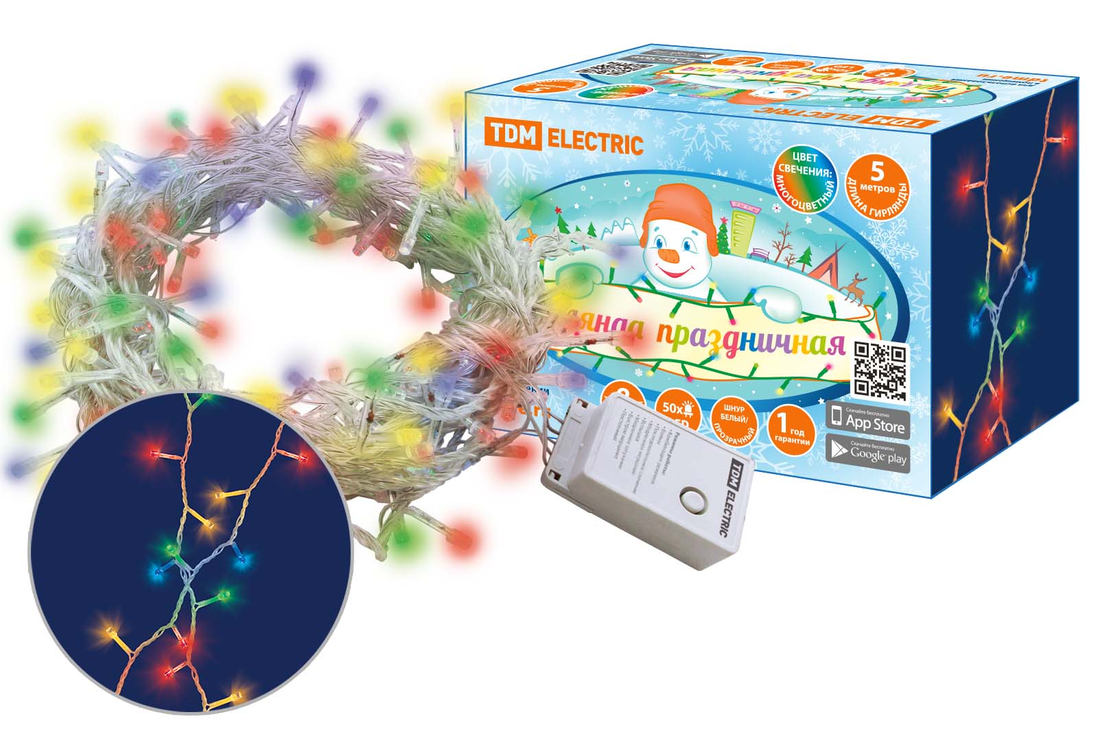 Гирлянда светодиодная СГ50M5, многоцвет., 5м, 8 режимов, 250 В, TDM