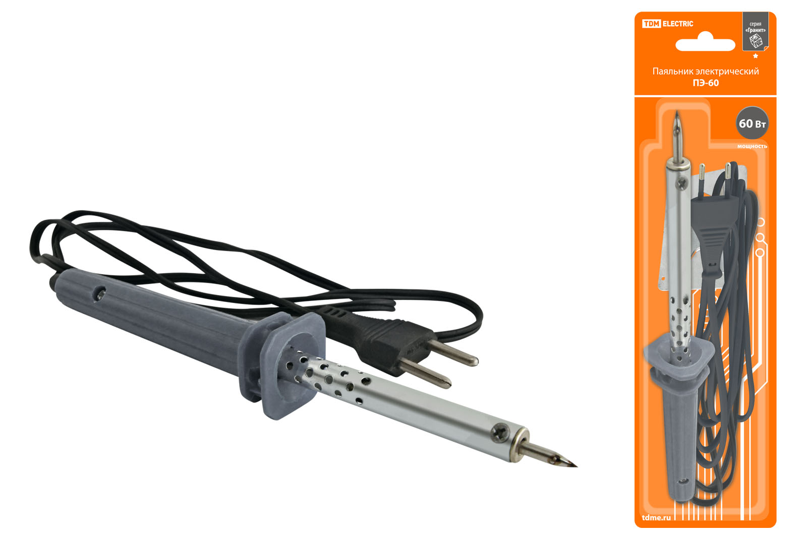Паяльник электрический ПЭ-60 с жалом типа "конус", в комплекте подставка, 60 Вт, "Гранит" TDM