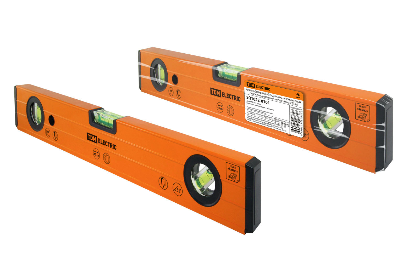 Уровень (ватерпас) 40 см, 3 глазка, алюминиевый, с магнитом, усиленный, серия "Алмаз" TDM