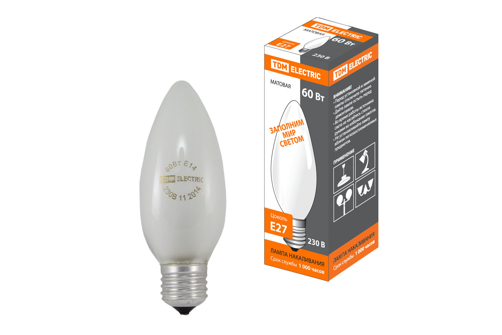 Лампа накаливания "Свеча матовая" 60 Вт-230 В-Е27 TDM