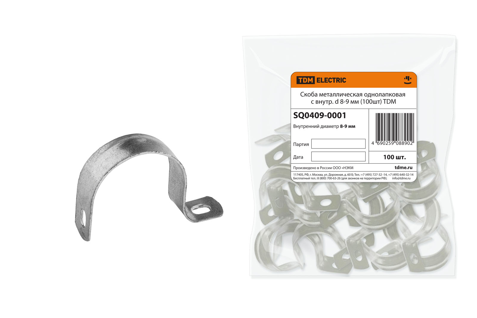 Скоба металлическая однолапковая с внутр. d 8-9 мм (100шт) TDM