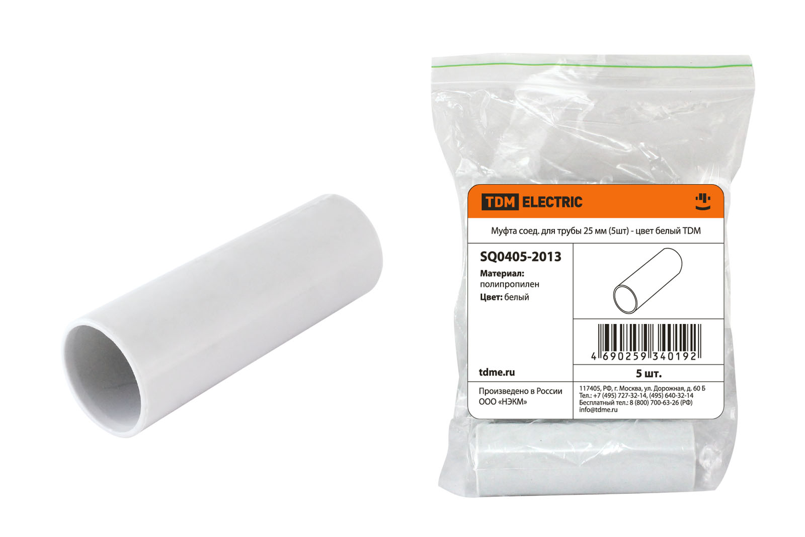 Муфта соед. для трубы 25 мм (5шт) - цвет белый TDM