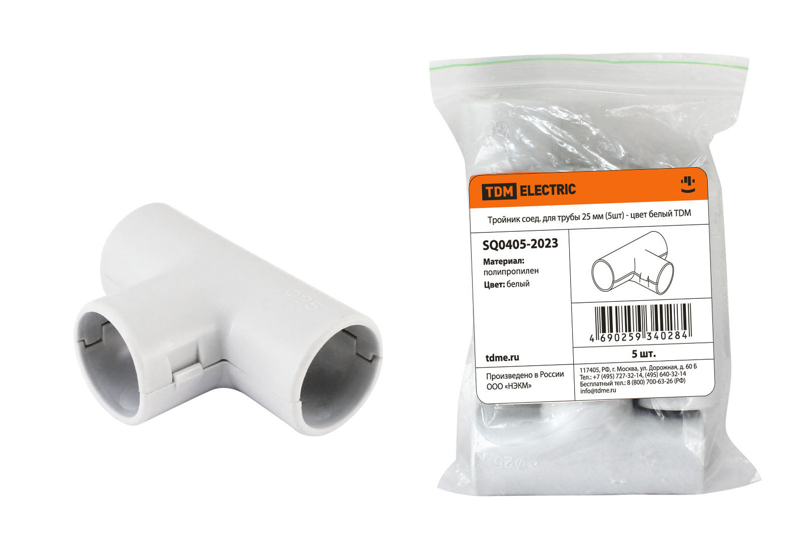 Тройник соед. для трубы 25 мм (5шт) - цвет белый TDM
