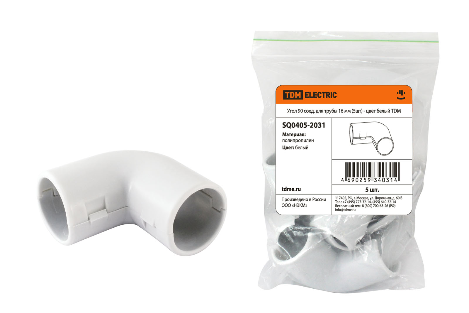 Угол 90 соед. для трубы 16 мм (5шт) - цвет белый TDM