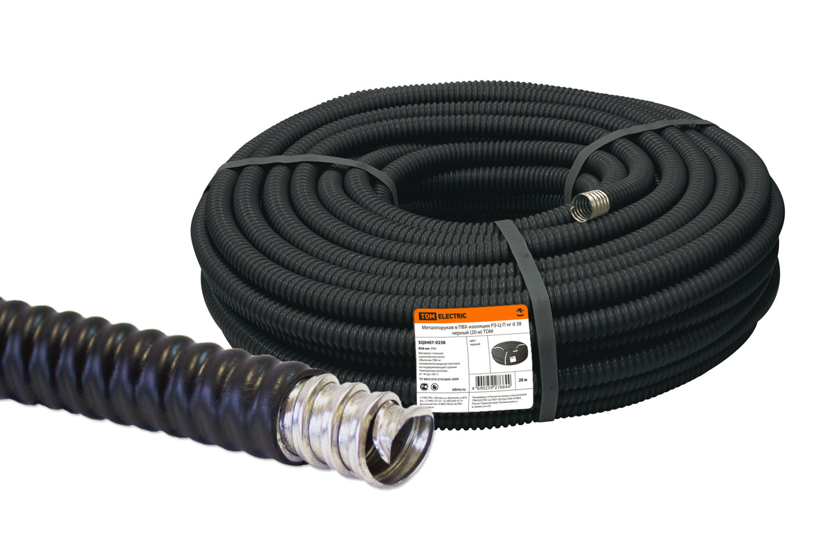 Металлорукав в ПВХ-изоляции РЗ-Ц-П нг d 38 черный (20м) TDM