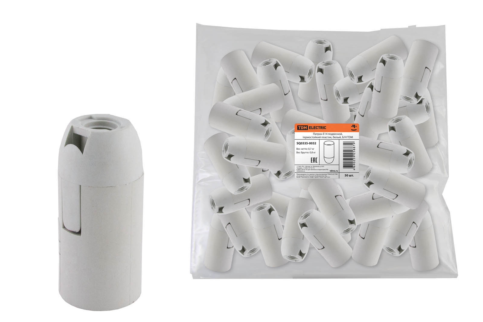 Патрон Е14 подвесной, термостойкий пластик, белый, Б/Н TDM