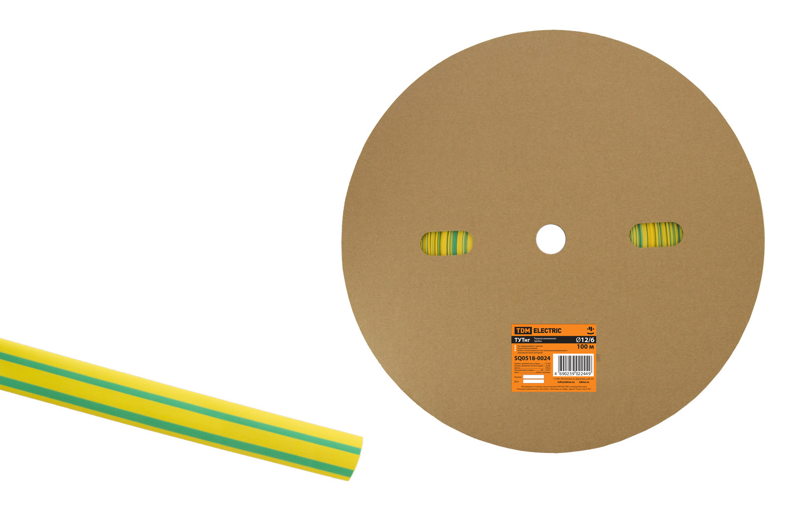 Термоусаживаемая трубка ТУТнг 12/6 желто-зеленая (100 м/ролл) TDM