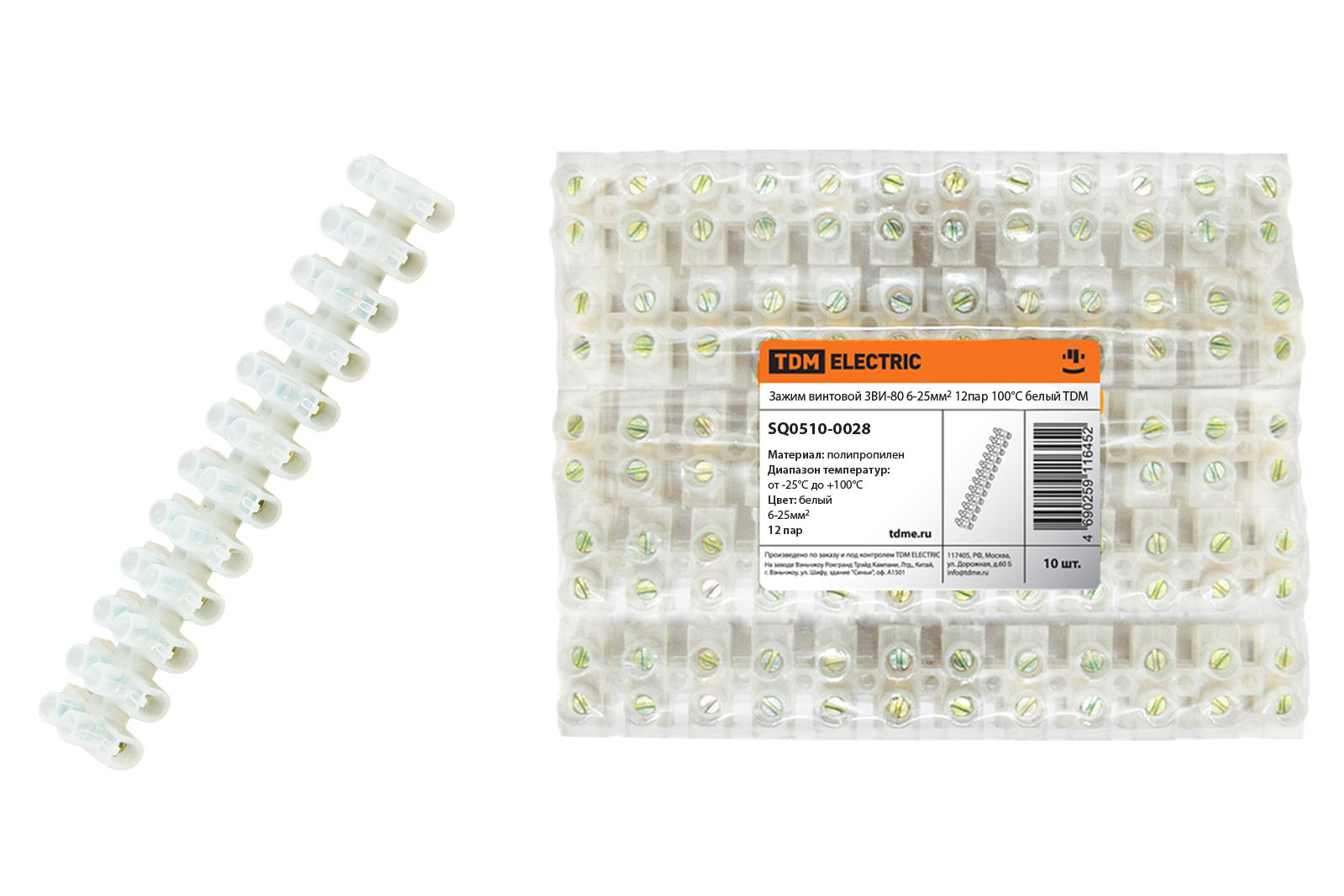 Зажим винтовой ЗВИ-80 полипропилен 6-25мм2 12пар 100°С белый TDM