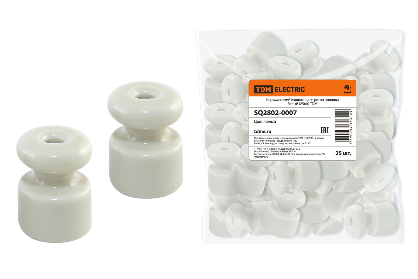 Керамический изолятор для ретро провода белый (25шт) TDM