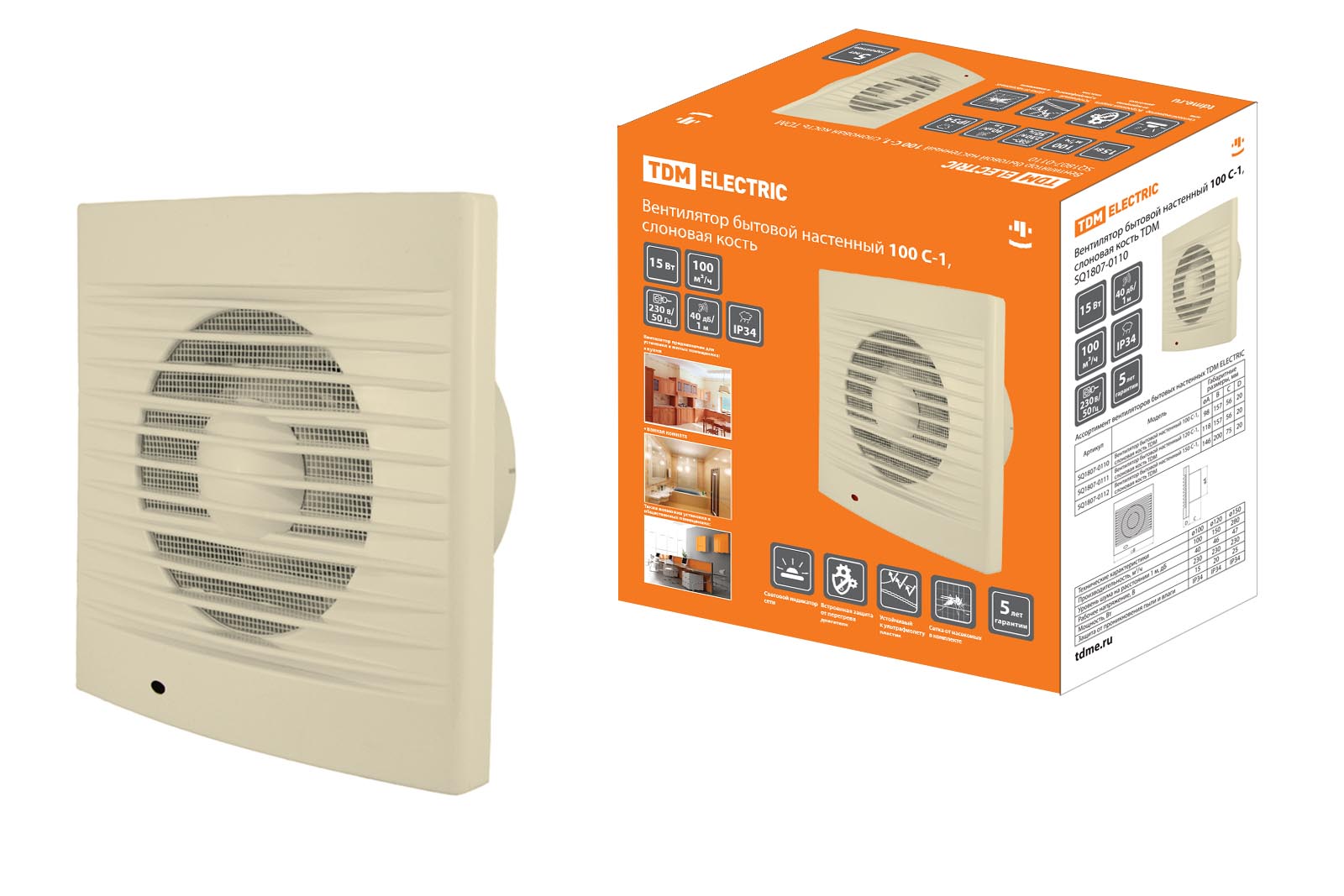 Вентилятор бытовой настенный 100 С-1, слоновая кость TDM