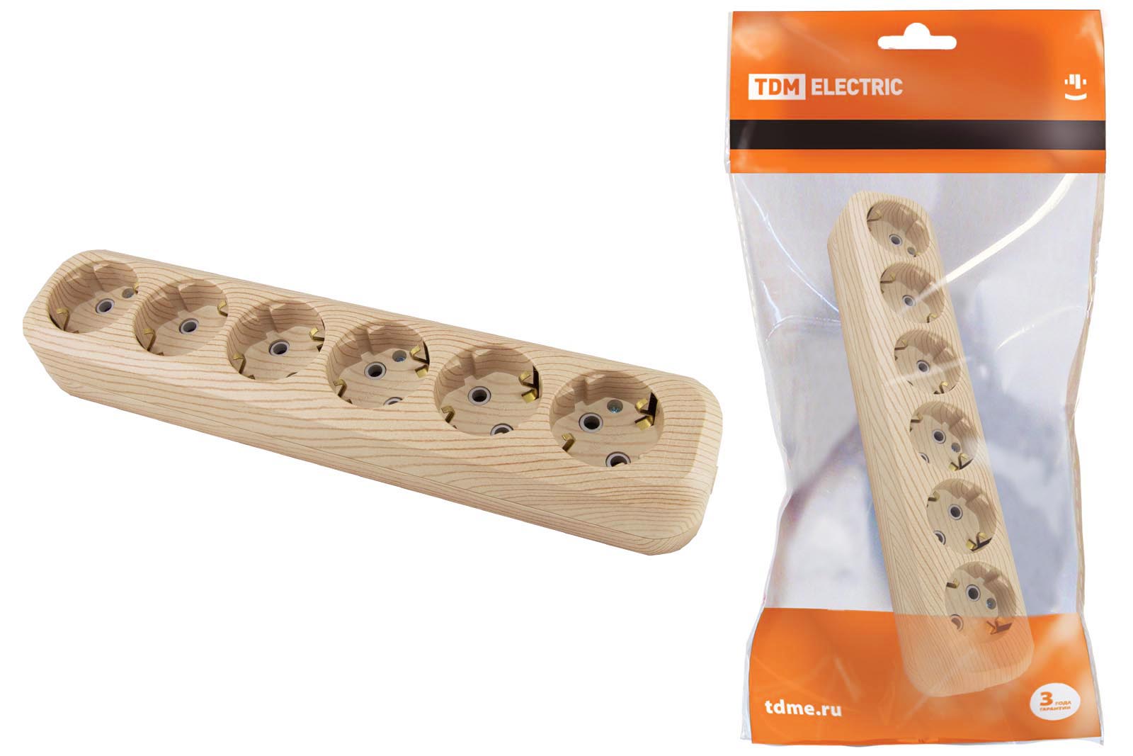 Колодка розеточная 6 гнезд 2П+3 16А 250В "Эко" (сосна) TDM