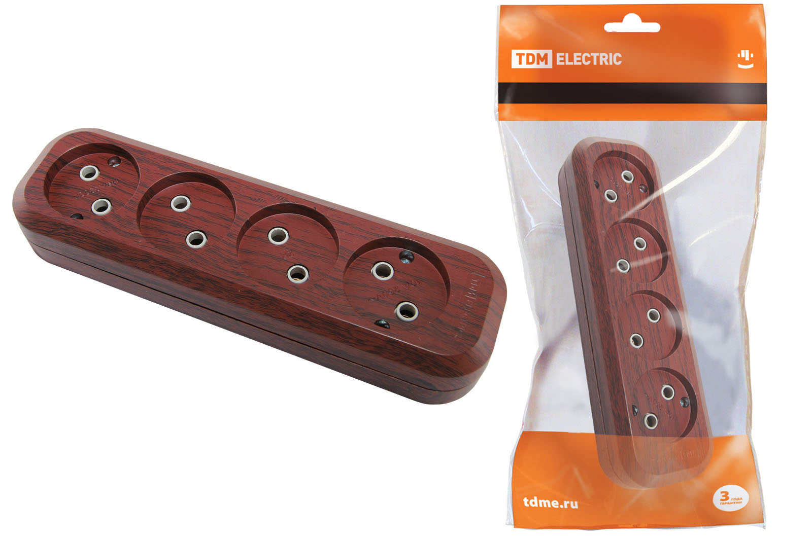 Колодка розеточная 4 гнезда 2П б/з 10А 250В "Эко" (бук) TDM