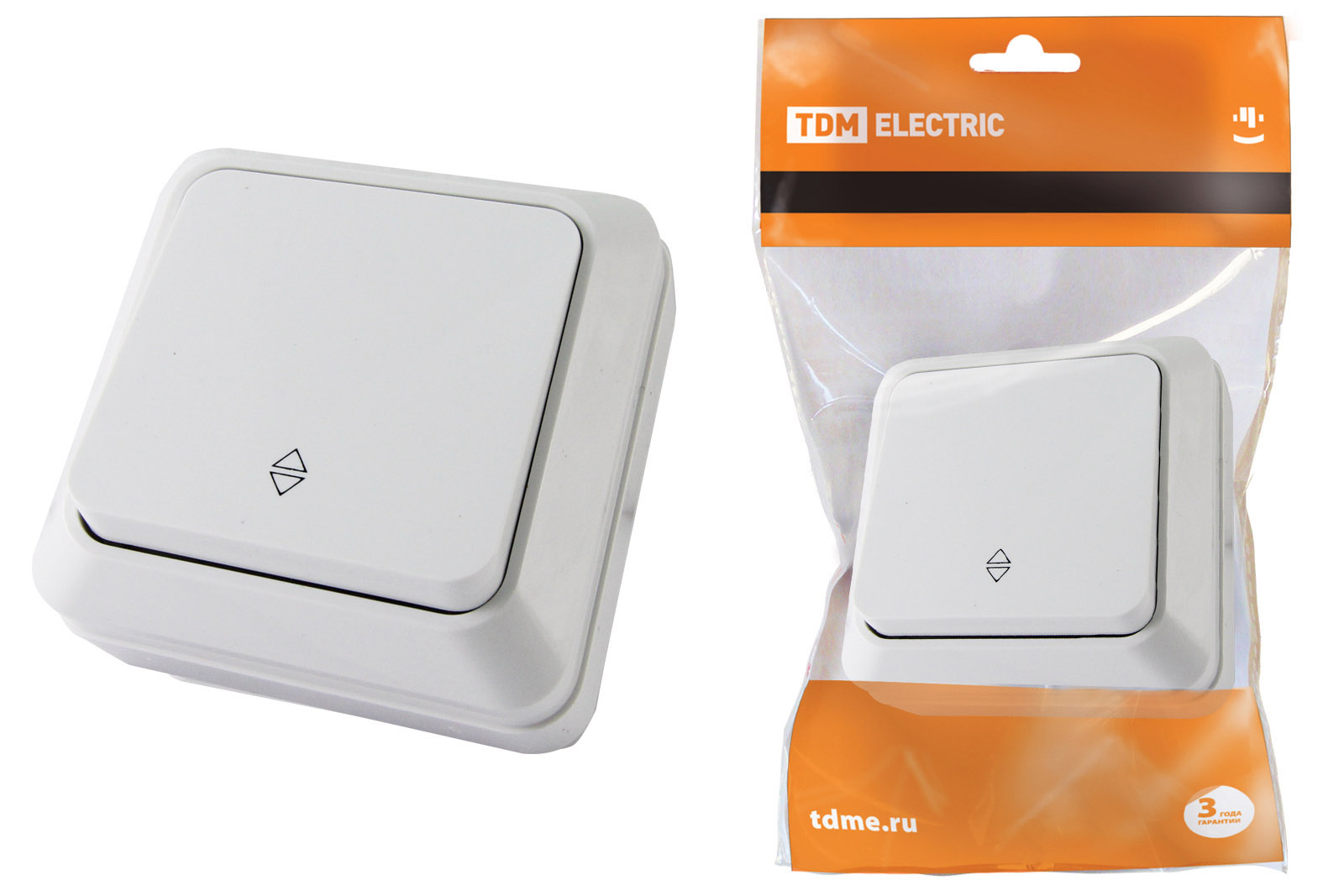 Переключатель на 2 направления 1-кл. открытой установки IP20 10А, белый "Ладога" TDM