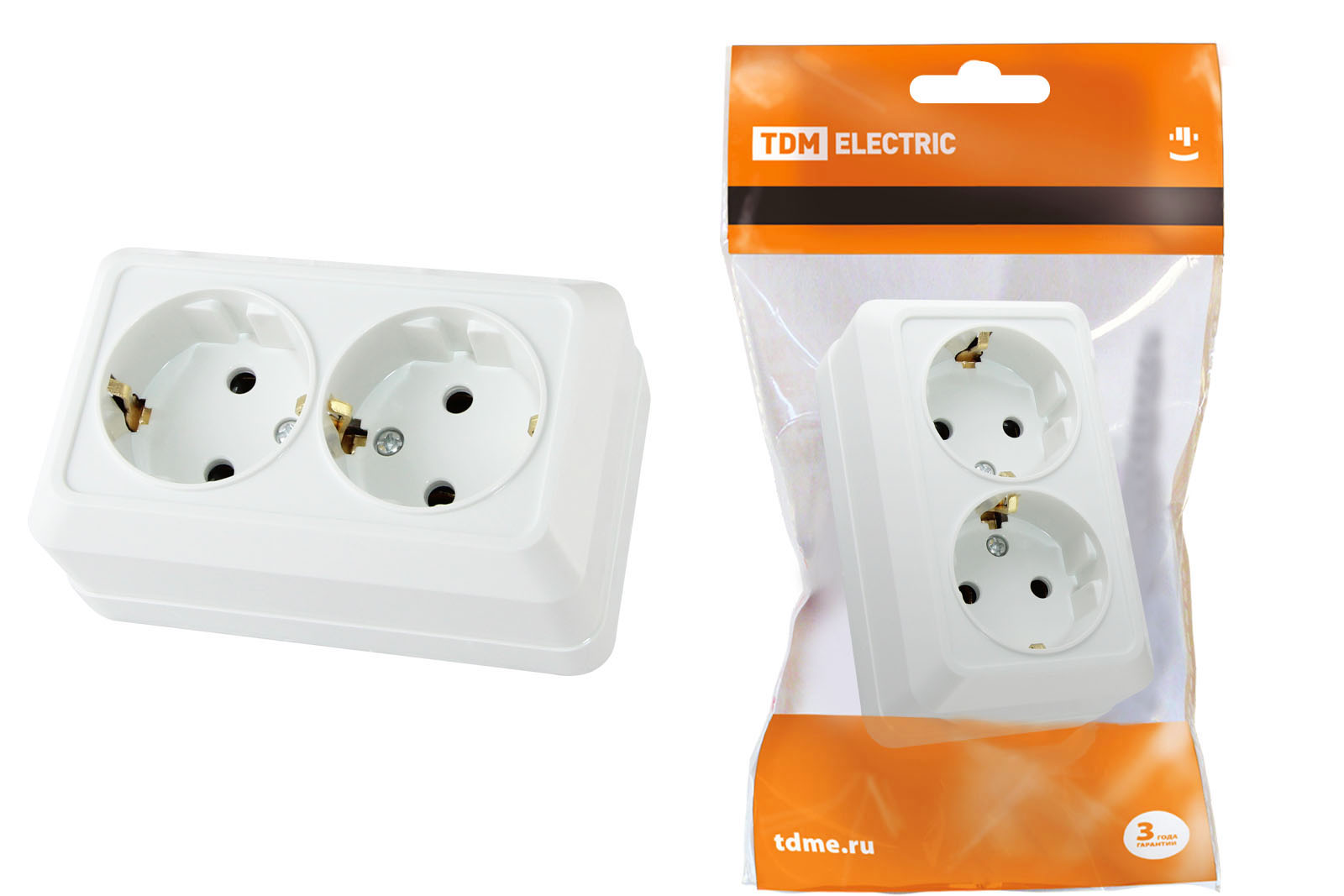 Розетка двойная 2П+3 открытой установки IP20 16А, белая "Ладога" TDM