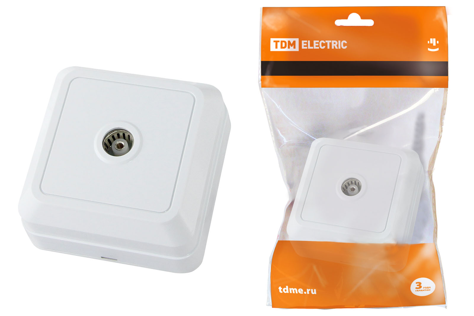 Розетка TВ простая (0-2400 Гц, "мама") открытой установки, IP20 белая "Ладога" TDM