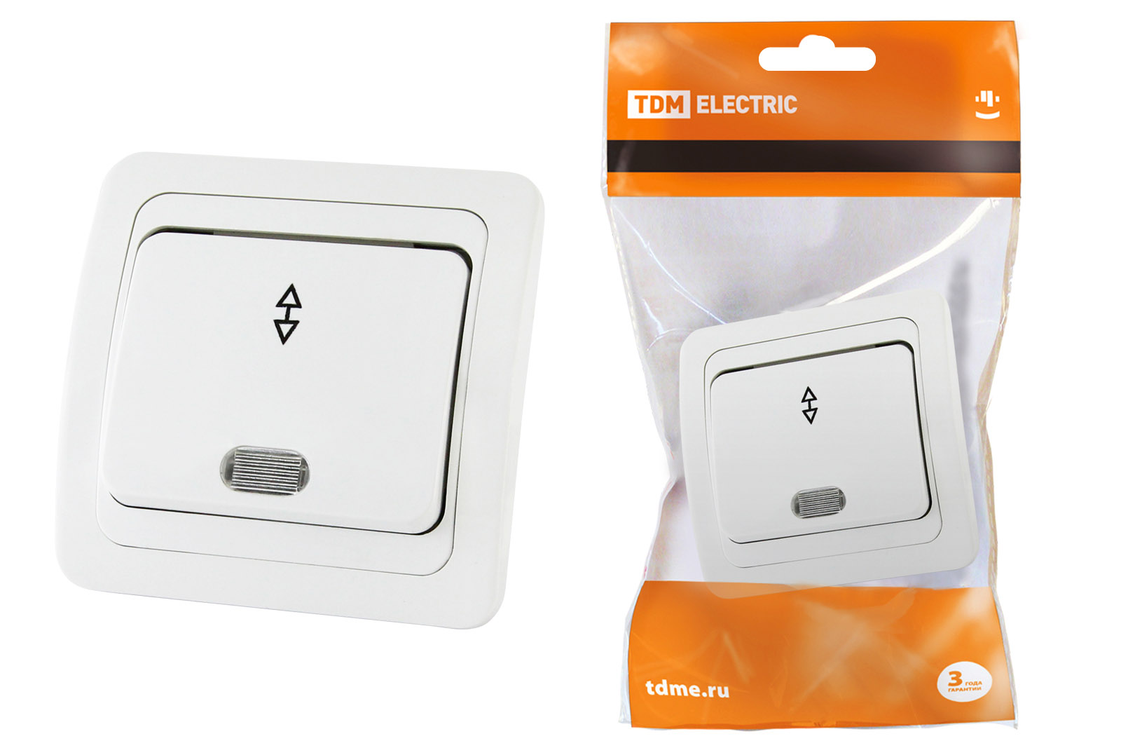 Переключатель на 2 направления с подсветкой 10А белый "Валдай" TDM