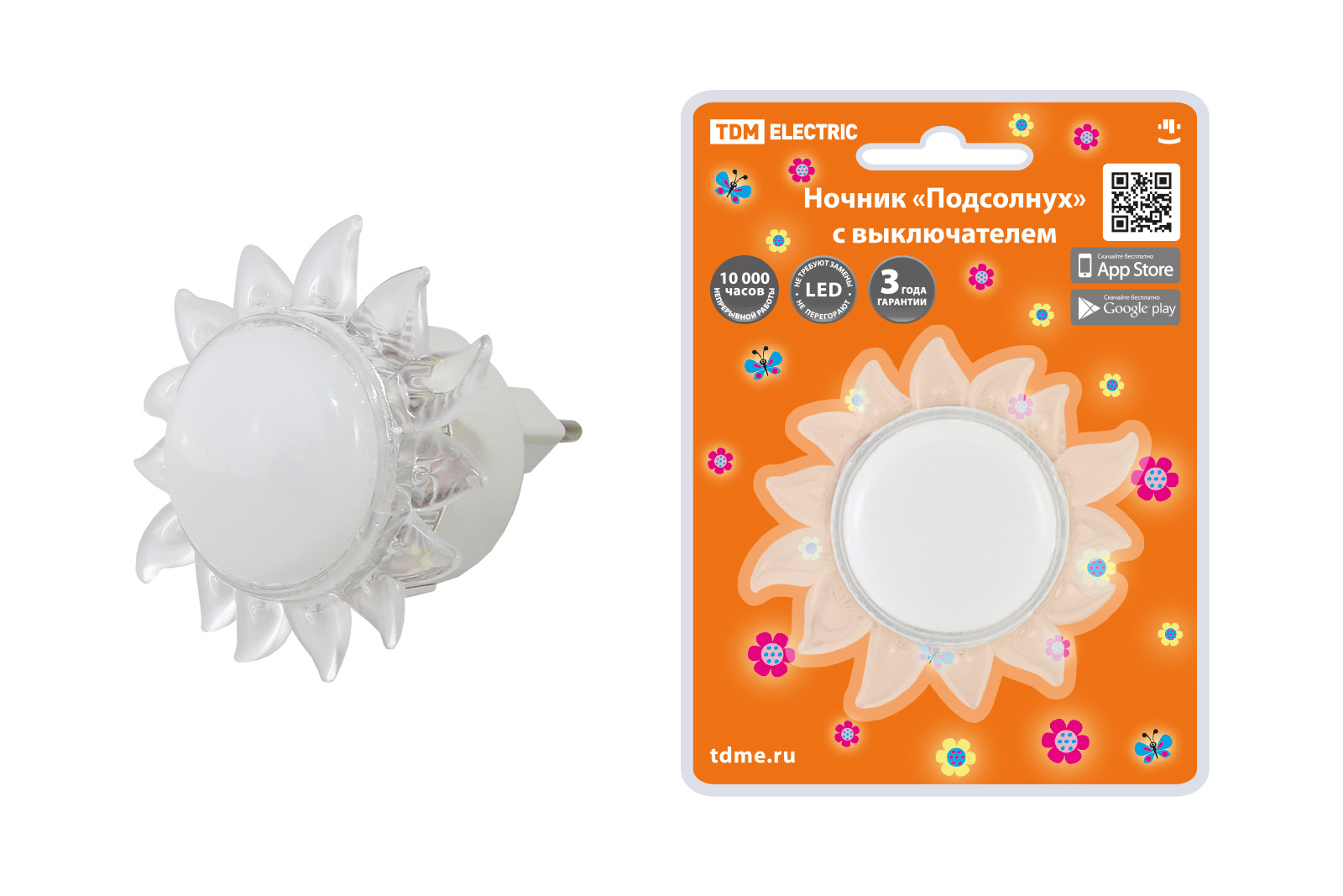 Ночник "Подсолнух" с выключателем, 0,4 Вт, 220 В TDM