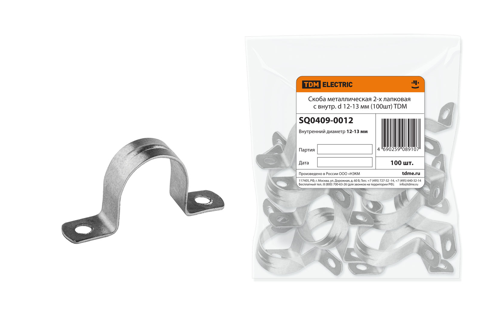 Скоба металлическая 2-х лапковая с внутр. d 12-13 мм (100шт) TDM