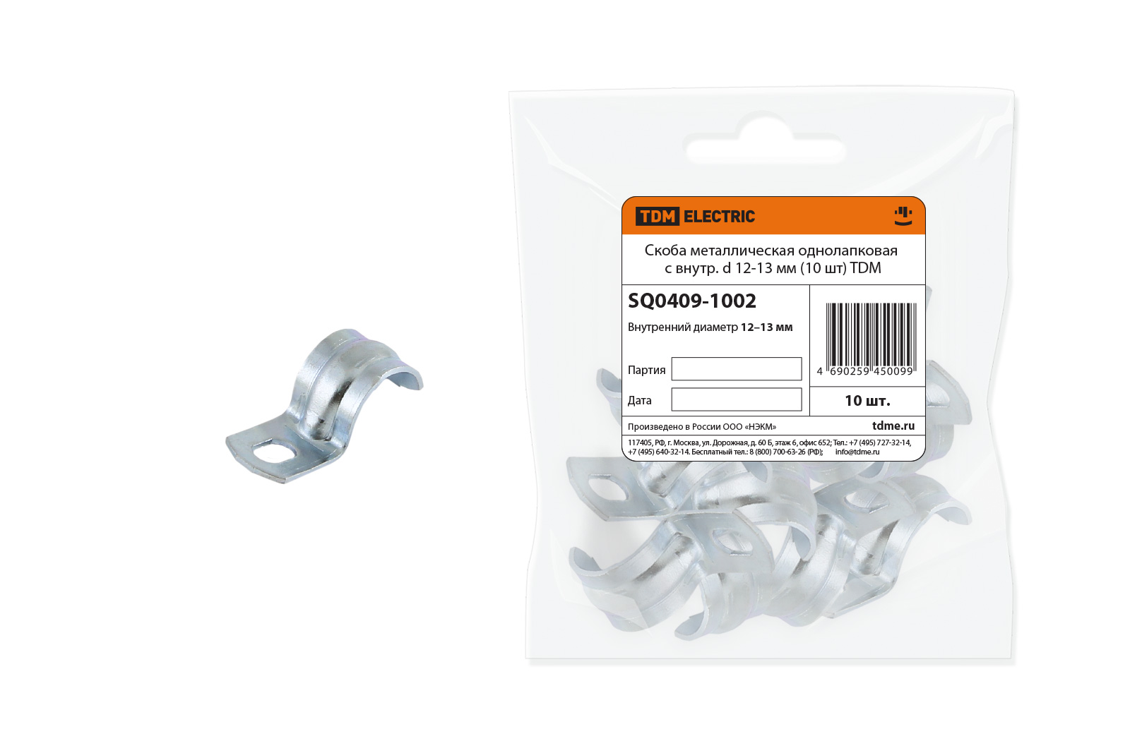 Скоба металлическая однолапковая с внутр. d 12-13 мм (10 шт) TDM