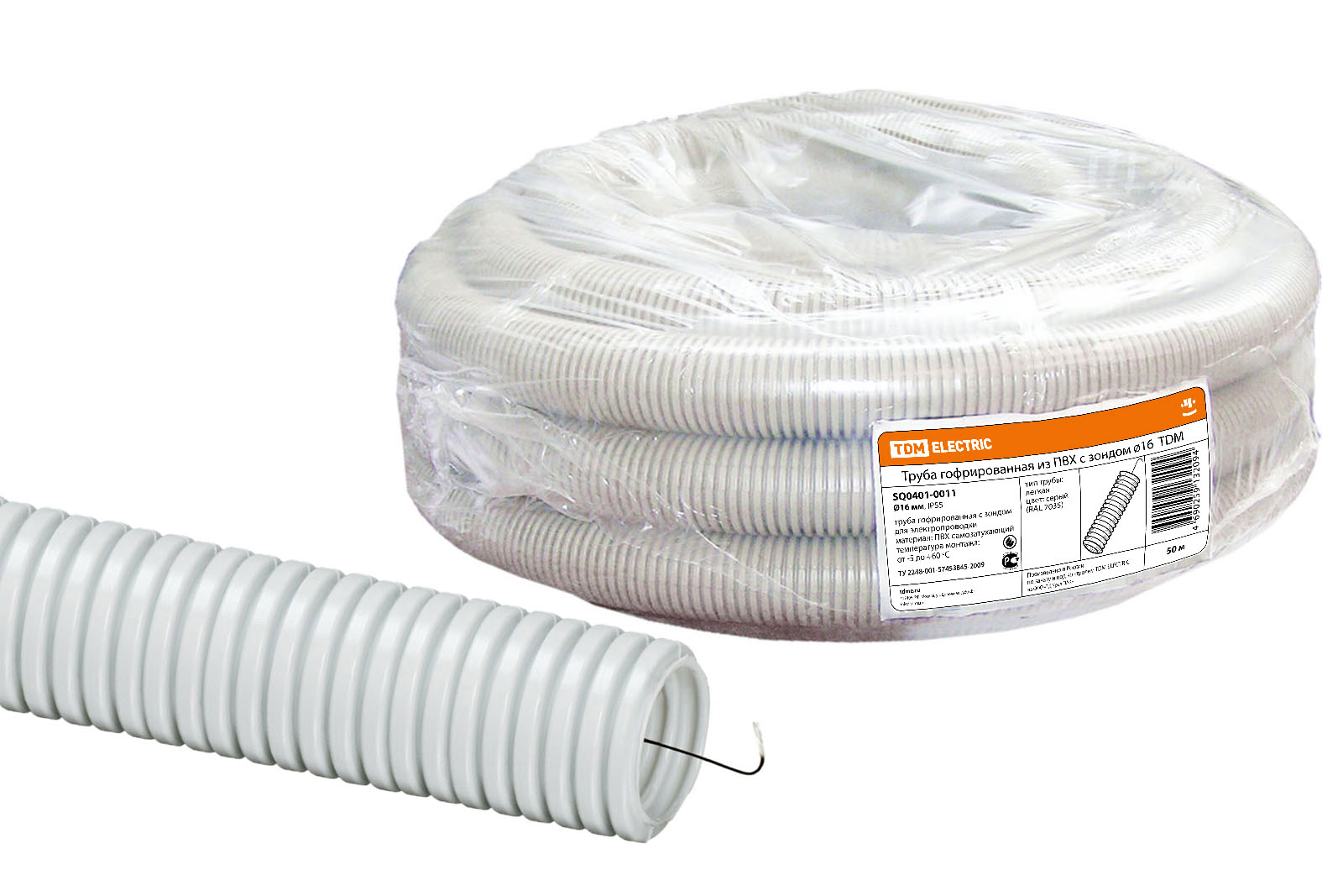 Труба гофр.ПВХ d 16 с зондом (50 м) легкая TDM