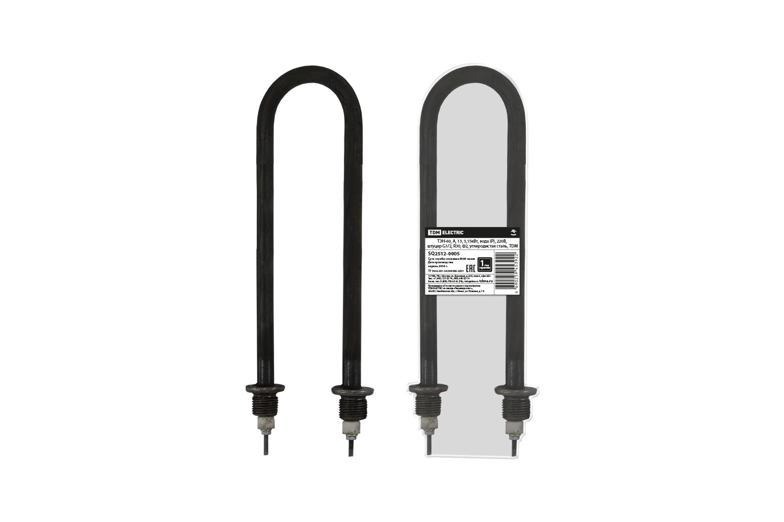 ТЭН-60, А, 13, 3,15кВт, вода (Р), 220В, штуцер G1/2, R30, Ф2, углеродистая сталь, TDM