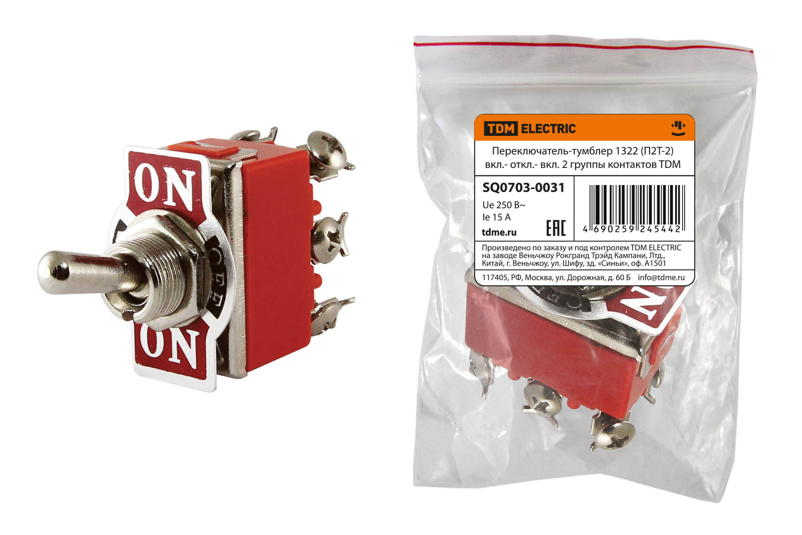 Переключатель-тумблер 1322 (П2Т-2) вкл.- откл.- вкл. 2 группы контактов TDM
