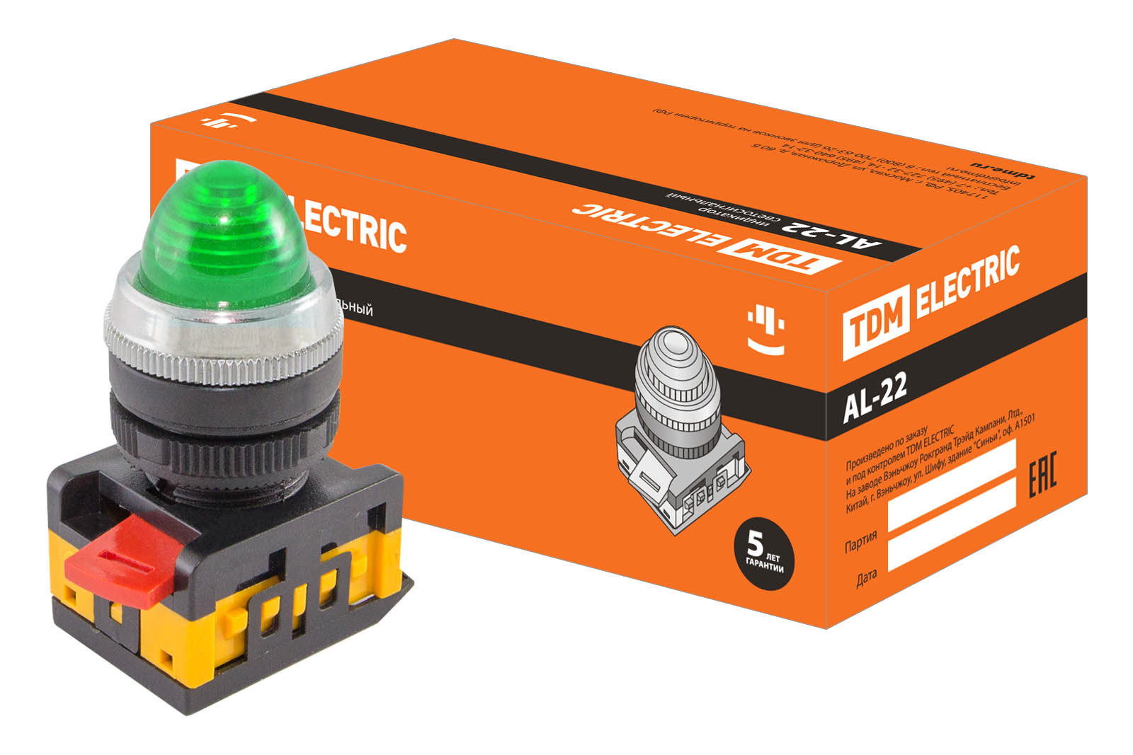 Лампа AL-22 сигнальная d22мм зеленый неон/230В цилиндр TDM