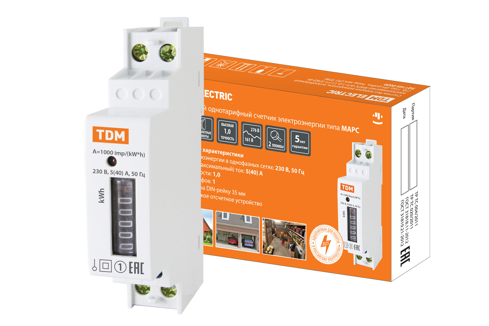 Счетчик без поверки МАРС-б/п-1,0-11-Р1-5(40)-М (1ф, 1тар, din-рейка, 1мод, мех.ОУ) TDM
