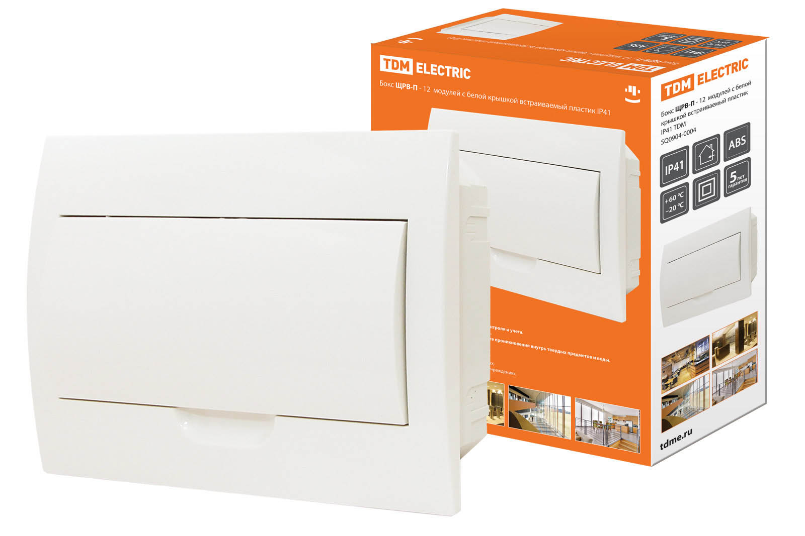 Бокс ЩРВ-П-12модулей с белой крышкой, встраиваемый, пластик IP41 TDM