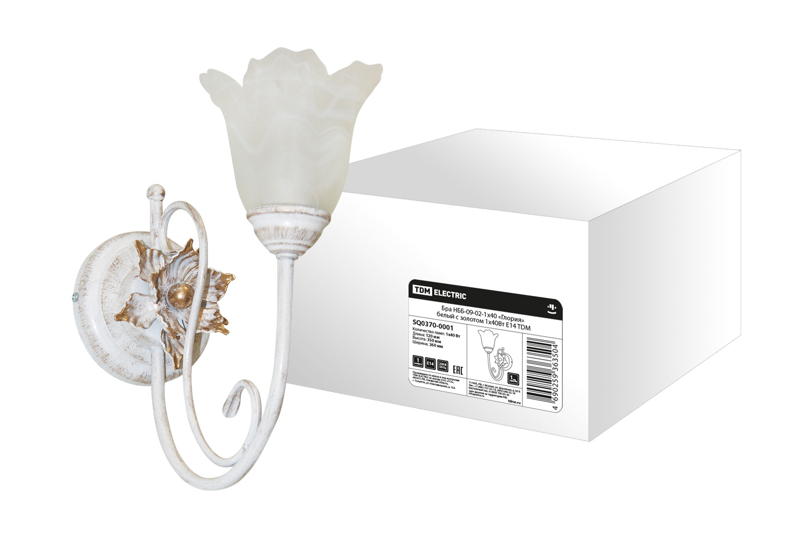 Бра НББ-09-02-1х40 «Глория» белый с золотом 1х40Вт E14 TDM