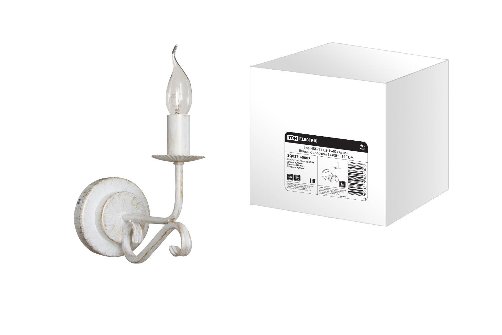 Бра НББ-11-02-1х40 «Аура» белый с золотом 1х40Вт E14 TDM