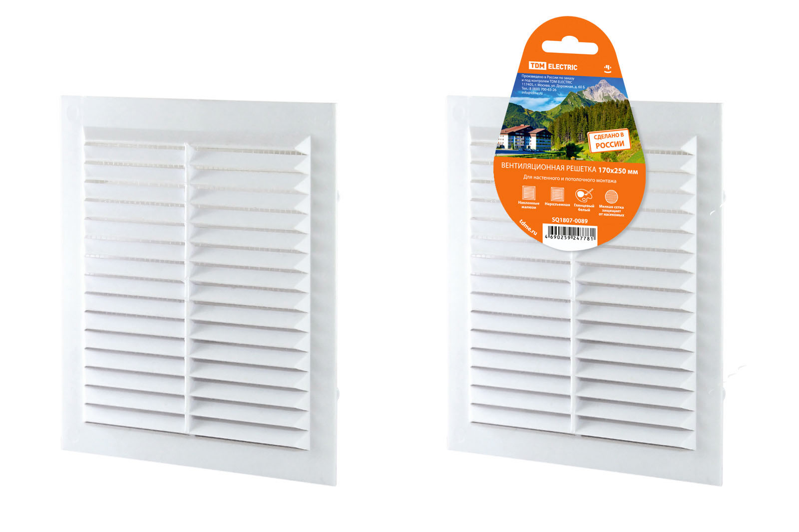 Решетка неразъемная с москитной сеткой, бел. 170х250 TDM