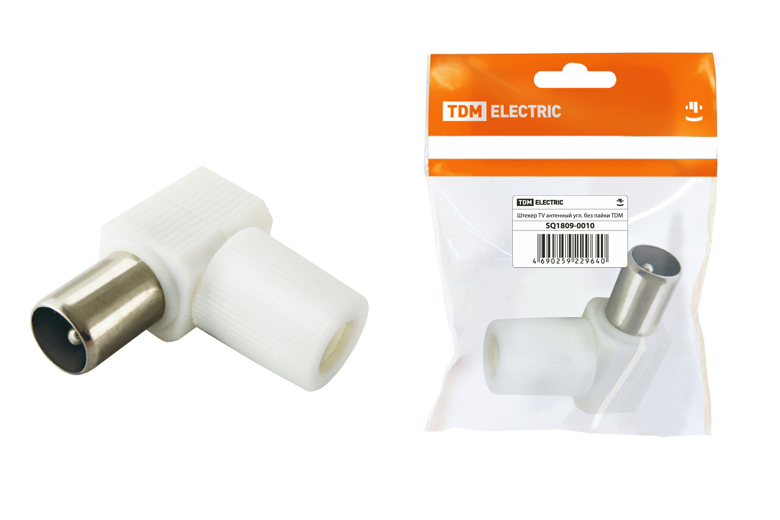 Штекер TV антенный угл. белый без пайки, инд. упаковка TDM