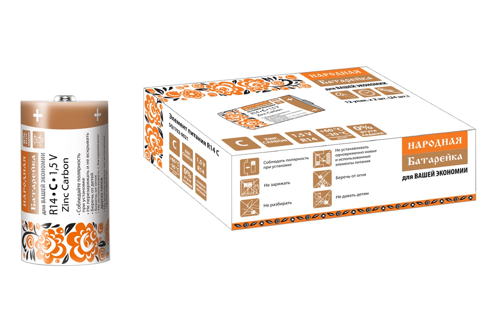 Элемент питания R14 C Zinc Carbon 1,5V SH-2 Народный