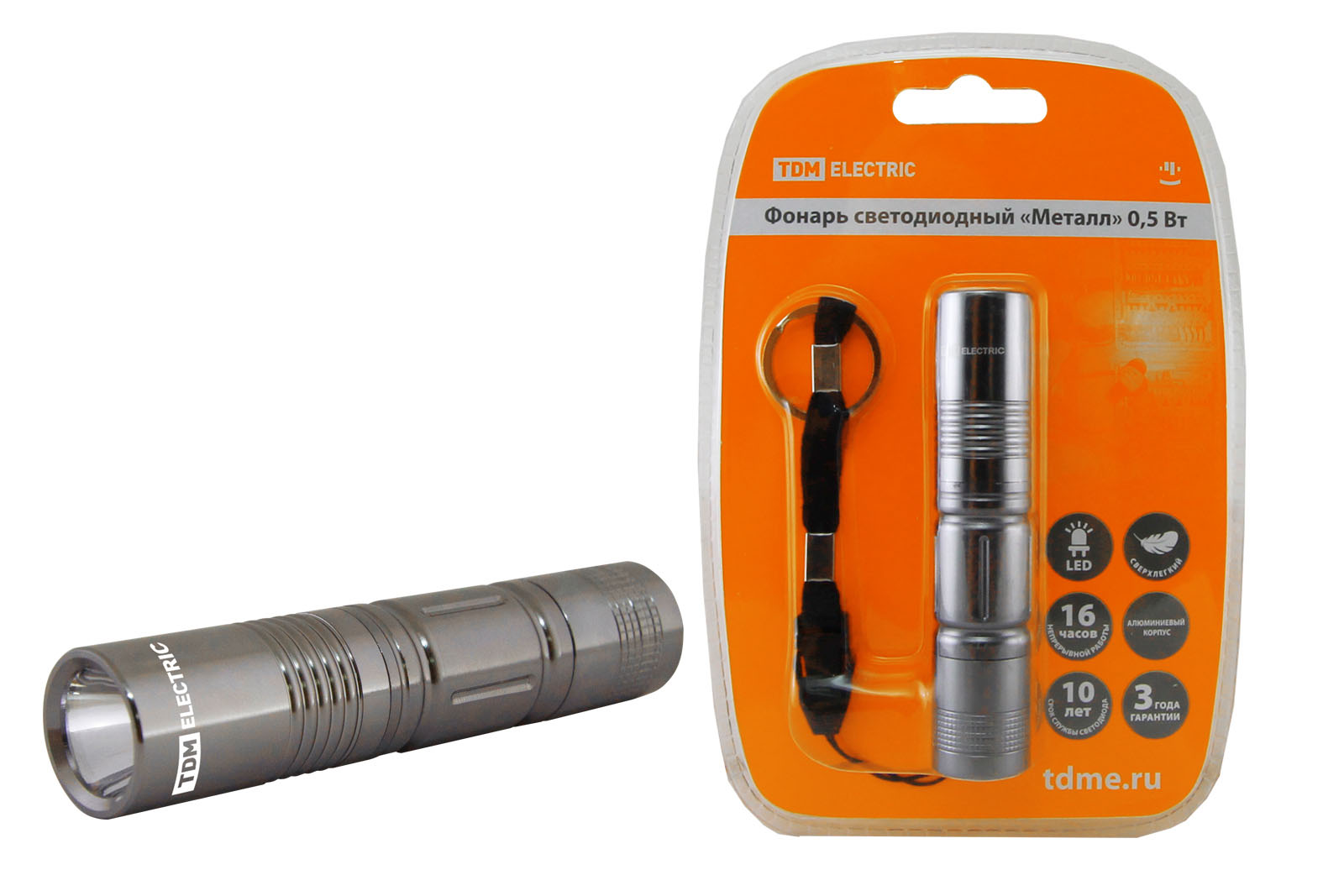 Фонарь светодиодный "Металл", 0,5 Вт светодиод 30 лм/Вт, бат. 1*AA TDM