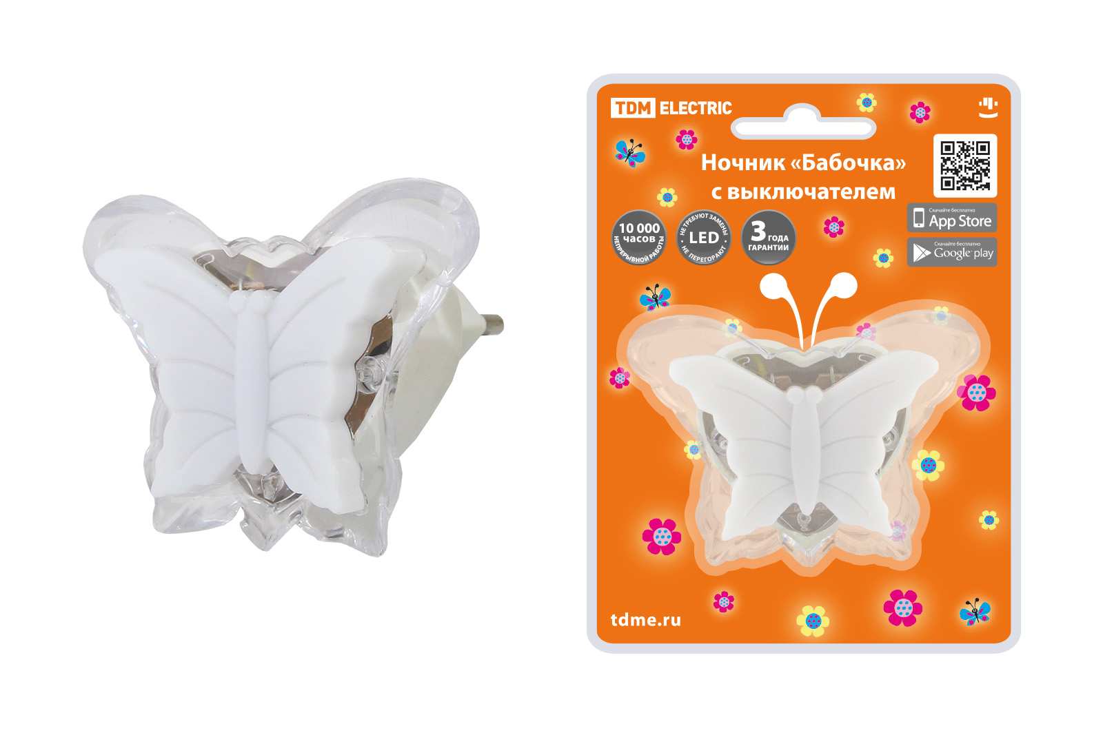 Ночник "Бабочка" с выключателем, 0,3 Вт, 220 В TDM