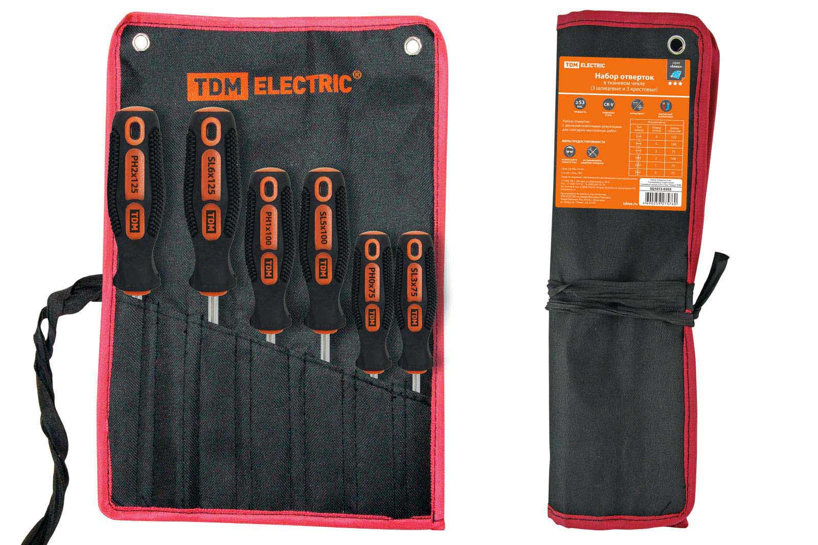 Набор отверток 6 шт.: SL:3х75;5х100;6х125, PH:0х75;1х75;2х100 (тканевый чехол), CR-V "Алмаз" TDM