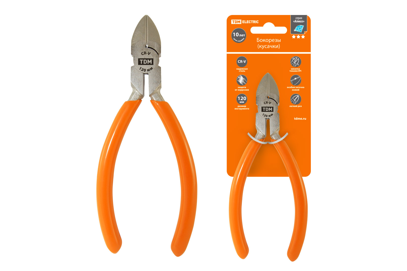 Бокорезы (кусачки), с однокомпонентными рукоятками, CR-V сталь, 120 мм, серия "Алмаз" TDM