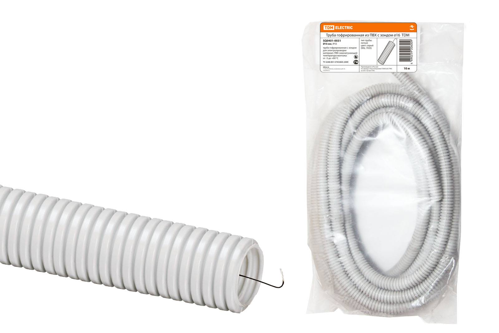 Труба гофр.ПВХ d 16 с зондом (10 м) легкая TDM
