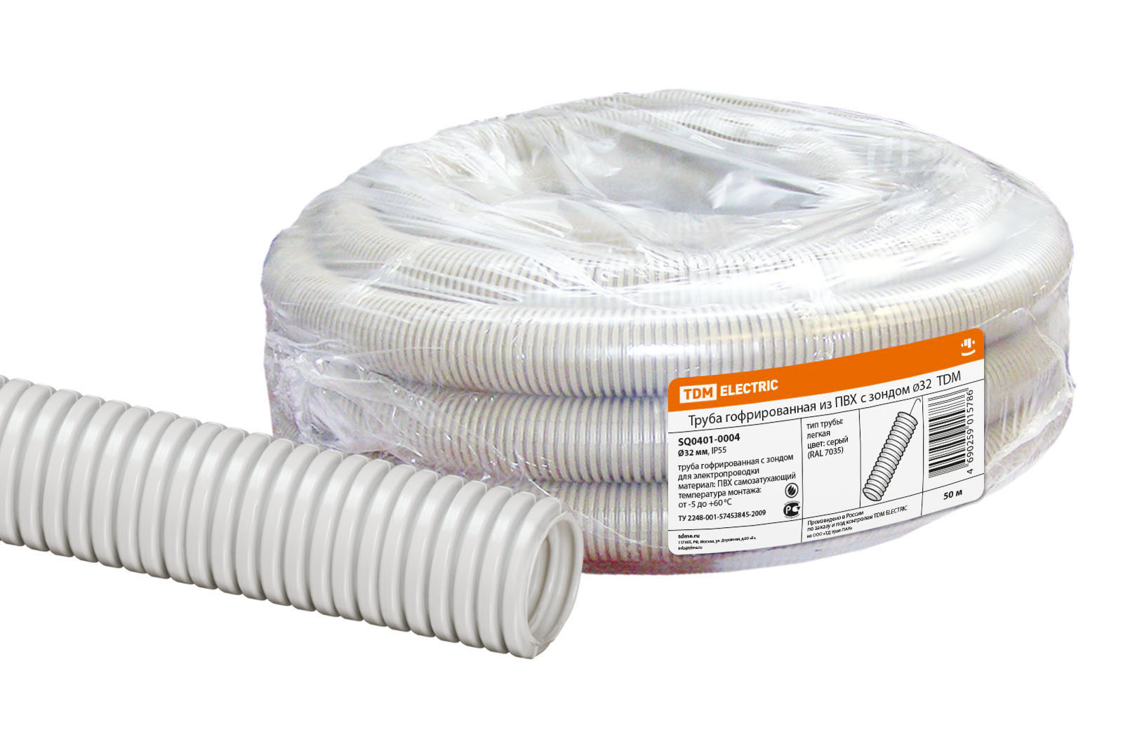 Труба гофр.ПВХ d 32 с зондом (50 м) легкая TDM