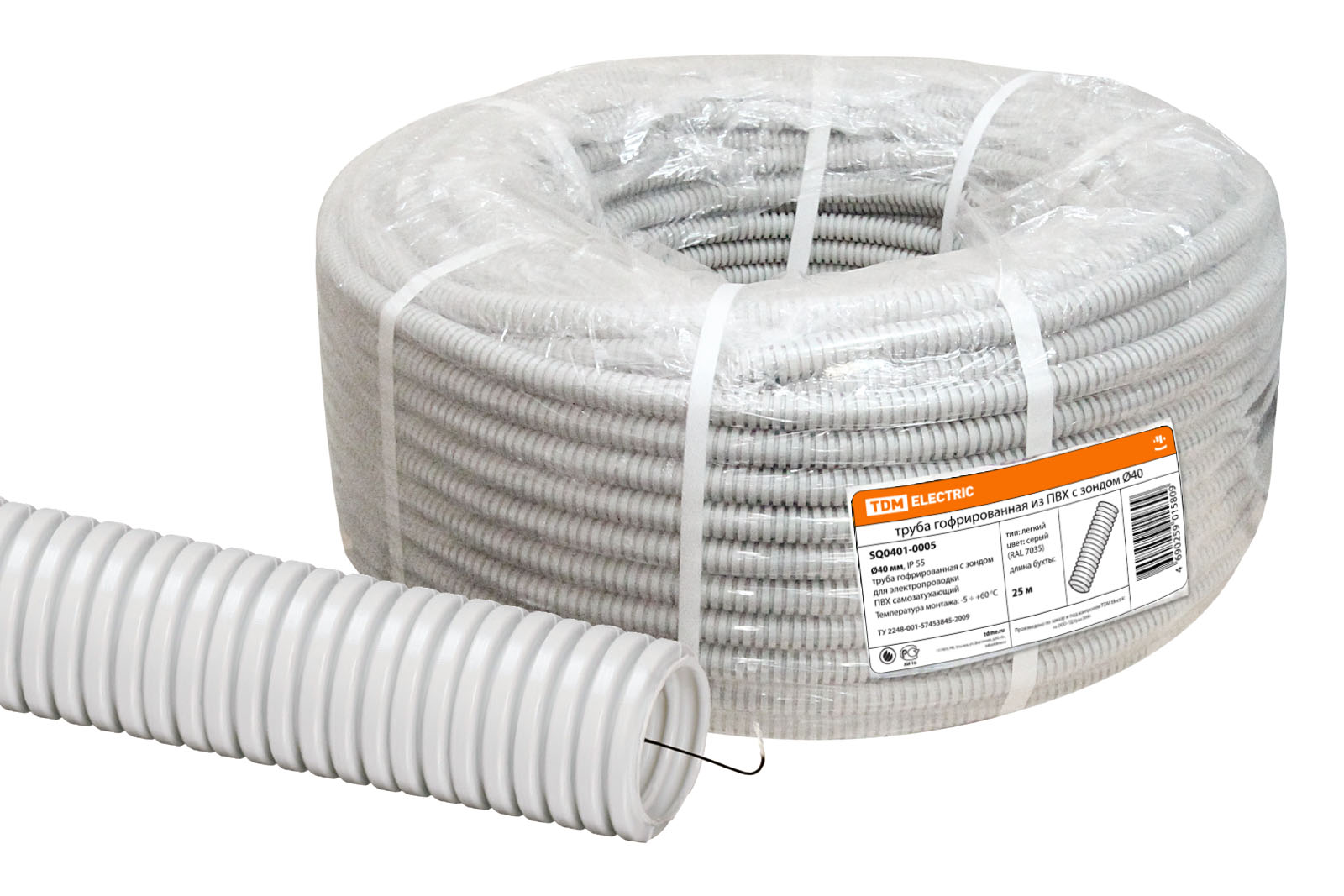 Труба гофр.ПВХ d 40 с зондом (25 м) легкая TDM